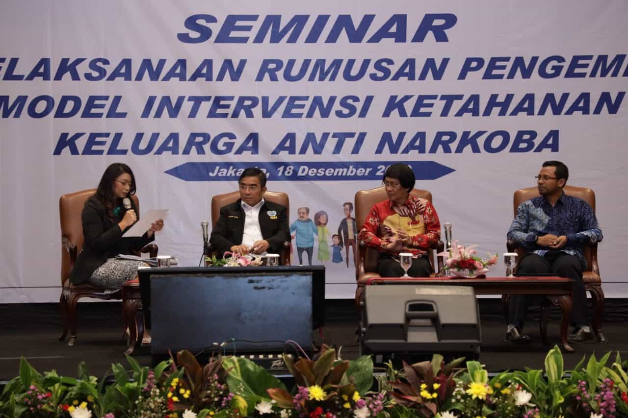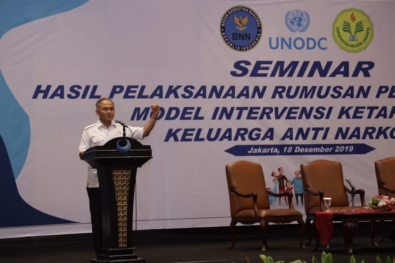 Dalam rangka penguatan ketahanan dari ancaman narkoba, Badan Narkotika Nasional (BNN) melalui Deputi Pencegahan bekerjasama dengan UNODC dan Universitas Negeri Jakarta, mengadakan kegiatan Seminar Hasil Pelaksanaan Rumusan Pengembangan Model Intervensi Ketahanan Keluarga Anti Narkoba, yang diikuti sebanyak 250 orang, di Hotel Bidakara, Jakarta ,Rabu (18/12).